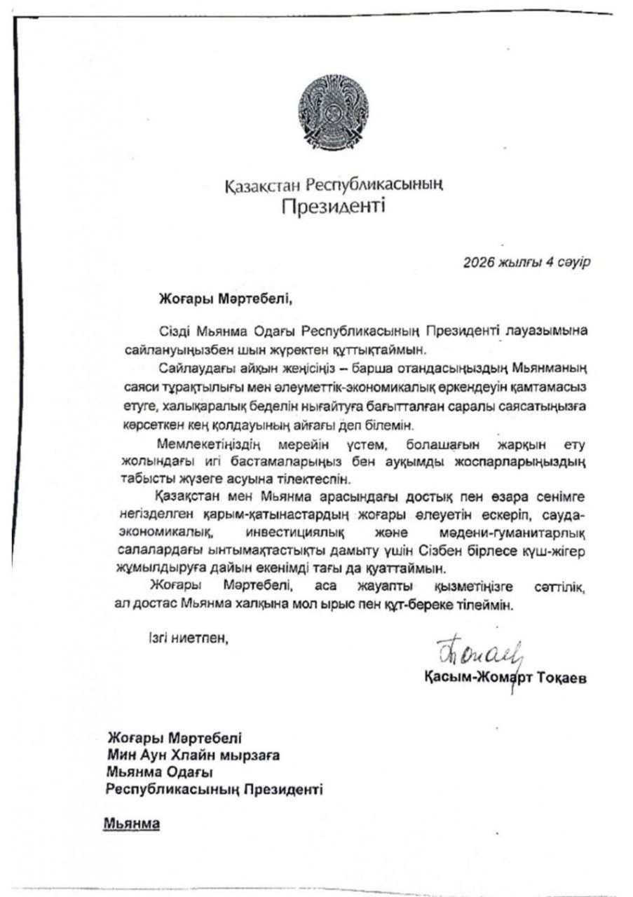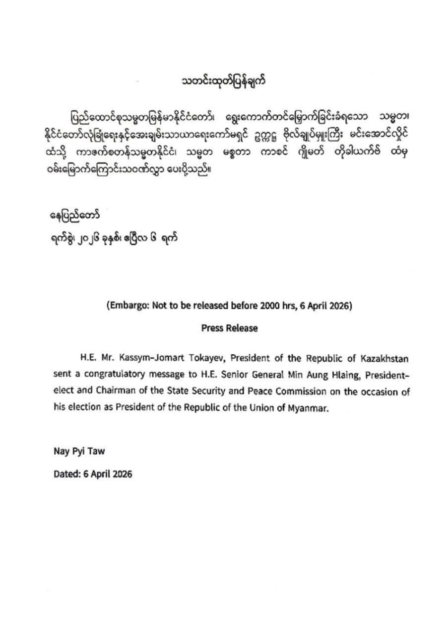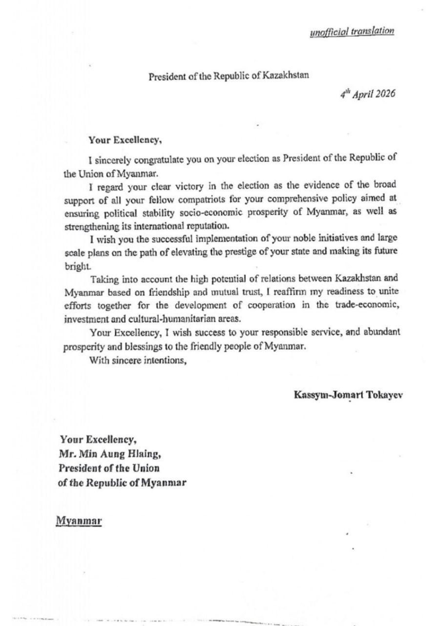 国家安全与和平委员会主席敏昂莱大将经联邦议会选举当选总统。多国领导人向他发来贺信。哈萨克斯坦总统卡斯穆-若马尔特·托卡耶夫发来贺信。柬埔寨国王诺罗敦·西哈莫尼也向他发来贺信。俄罗斯圣彼得堡市长亚历山大·别格洛夫同样表达了祝贺。