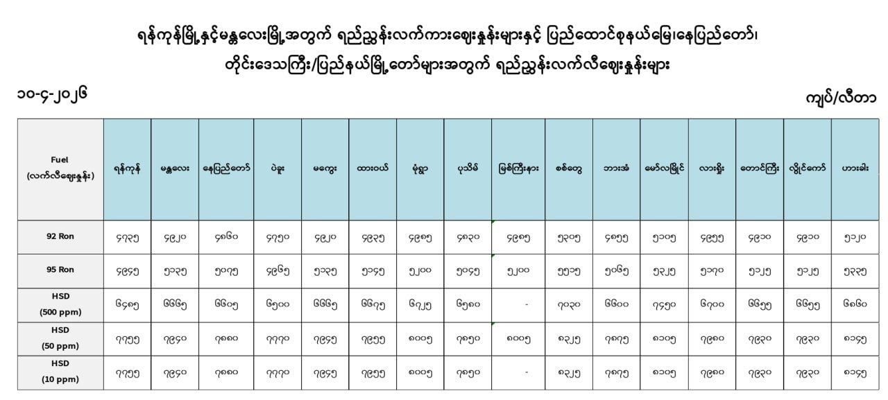 4月10日缅甸燃油指导价再次上调。柴油价格每升上涨了约1000缅币。另外92号汽油每升涨了约100缅币。95号汽油每升也涨了150到200缅币左右。