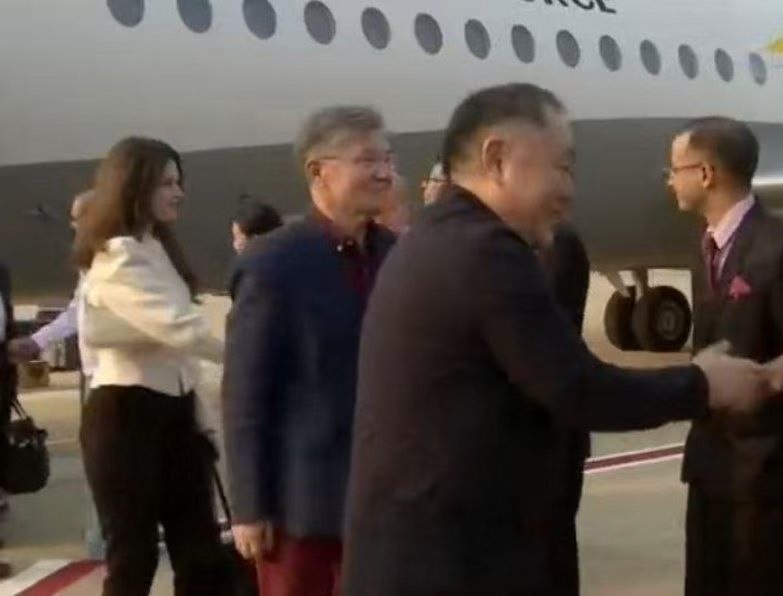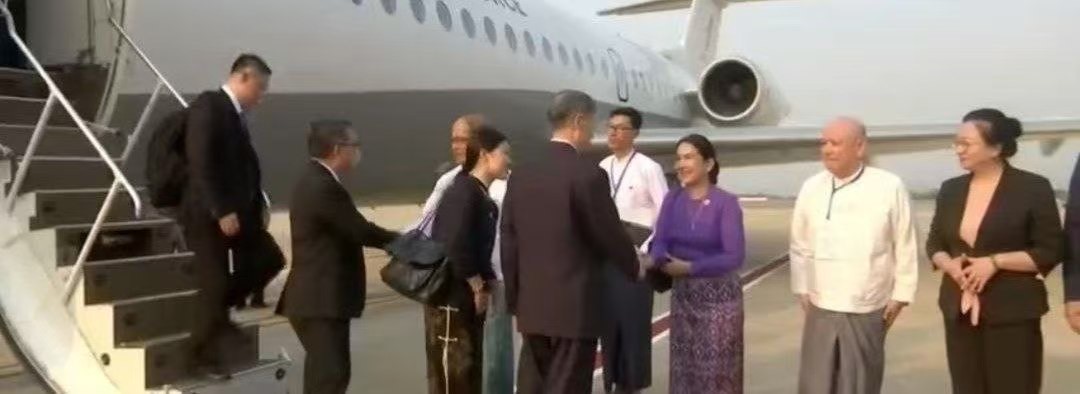 4月9日傍晚,外国政府代表乘坐专机抵达内比都,他们将出席4月10日在联邦议会举行的新任总统宣誓就职仪式。缅甸外交部副部长及相关负责人在内比都军用机场迎接了他们。