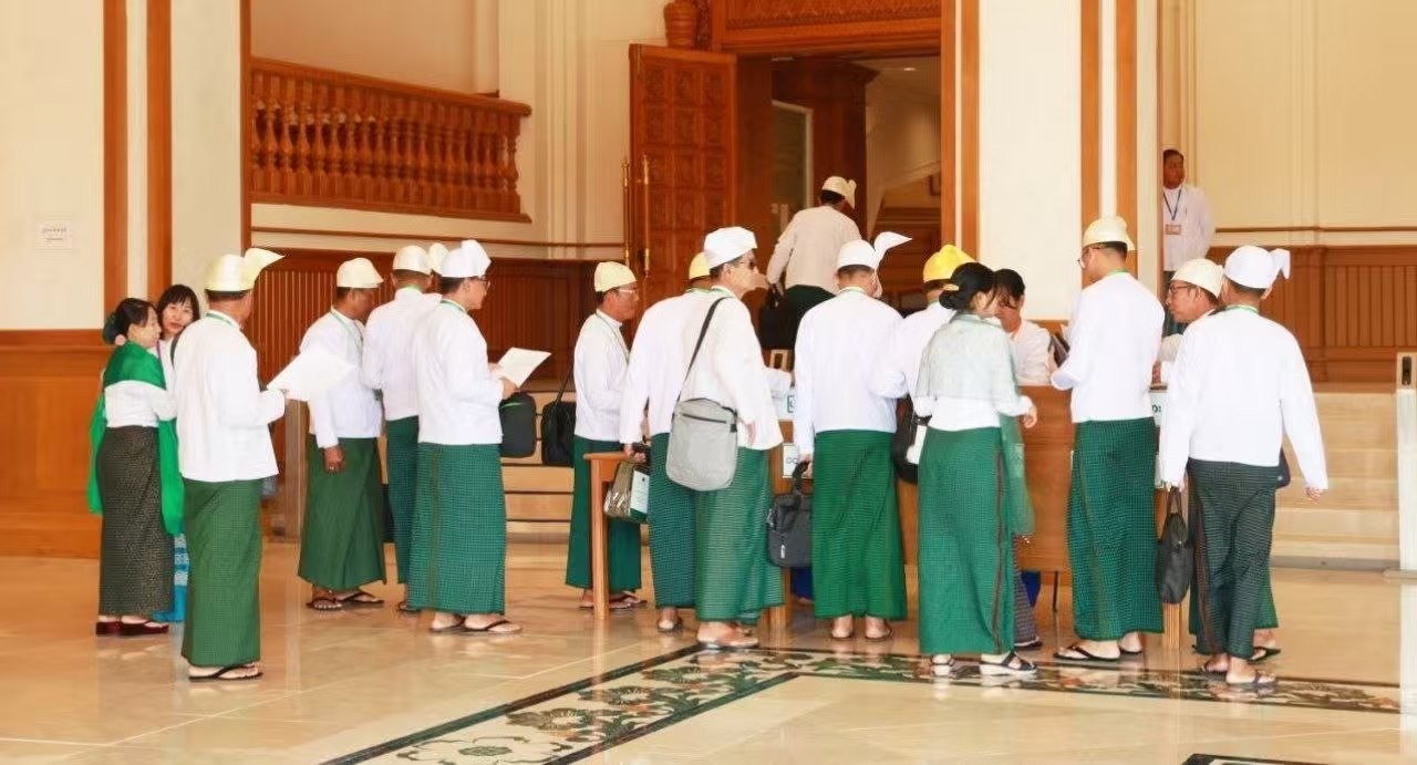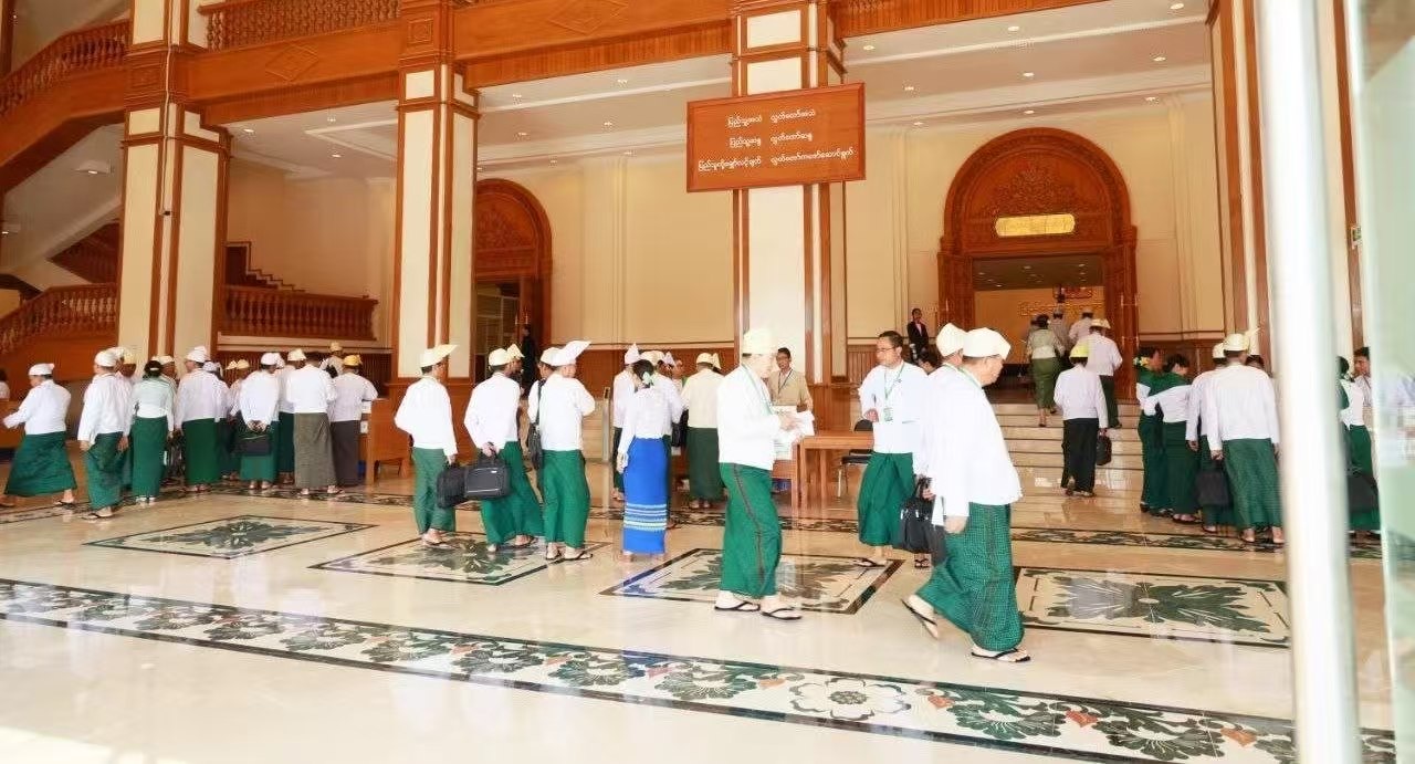 4月10日上午10点,缅甸新任总统宣誓就职仪式在联邦议会举行。各位议会代表已经陆续抵达现场准备参加仪式。