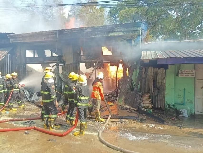 4月10日下午2点50分左右,伊洛瓦底省勃生镇区发生一起火灾,起火地点在2号街区阿觉丹路(အကျော်တန်းလမ်း),是煤气罐爆炸引起的。伊洛瓦底省消防部门立刻派人赶赴现场救援,他们一共出动了5辆消防车和4辆运水车,专职和辅助消防员都参与了灭火。下午3点10分左右火势得到控制,3点半左右大火被彻底扑灭。