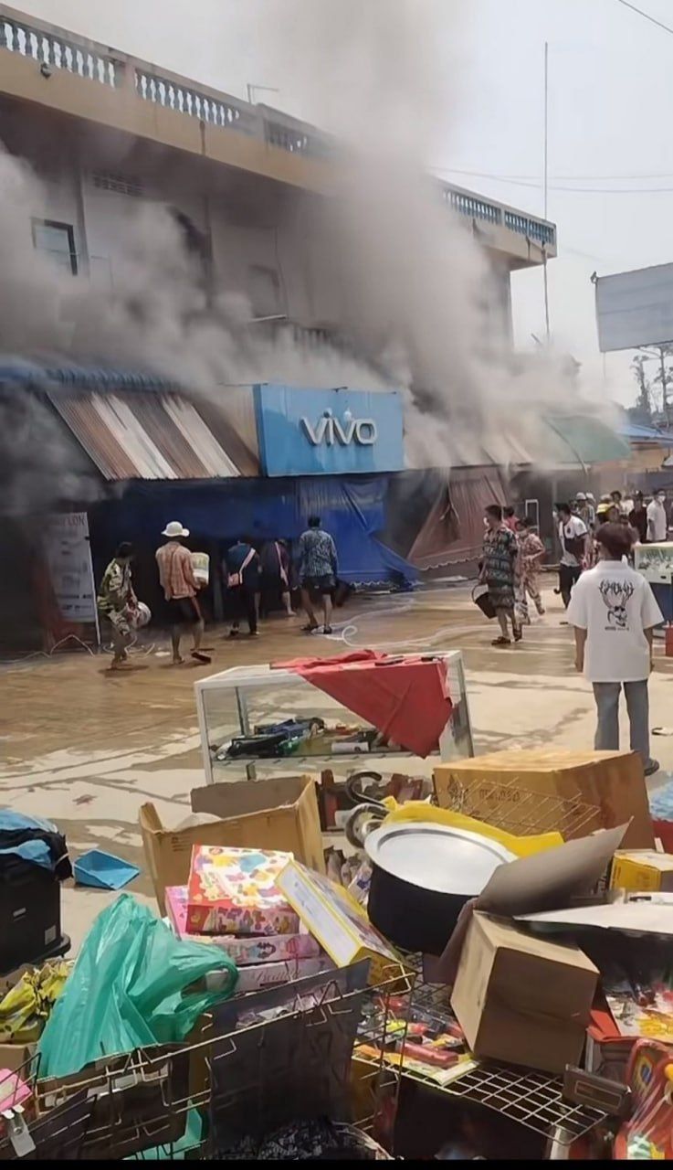 4月18日中午,掸邦东部孟萨镇区发生一起火灾。具体位置在普纳科村(ပူနားကိုကျေးရွာ)。大火最先从一家手机店烧起。随后火势迅速蔓延到了旁边的服装店和玩具店。这起火灾导致1人受了轻伤。其他人员都没有受伤。但是手机店和服装店里的大量商品都被彻底烧毁了。