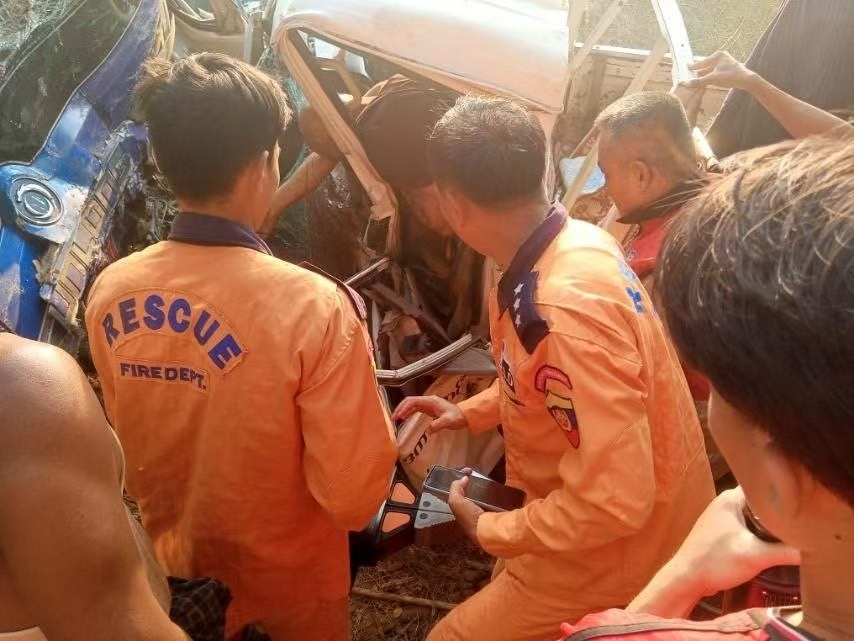 4月18日下午4点30分左右,孟邦直通镇区发生了一起严重车祸,事发地点在仰光到毛淡棉公路的104/5英里路碑处。一辆客车与一辆Hijet微型车发生了相撞,微型车上当时一共载有19人,这起猛烈的撞击导致5名和尚、1名沙弥和3名男子当场身亡。另外还有7名和尚和3名男子受伤,阿金纳兑莱(အကြင်နာတွဲလက်)等5家当地救援协会迅速出动了救护车。伤者被紧急送往直通人民医院和登泽克(သိမ်ဆိပ်)乡镇医院接受救治。缅甸消防部队随后通报表示,客车上的所有乘客都没有受伤。