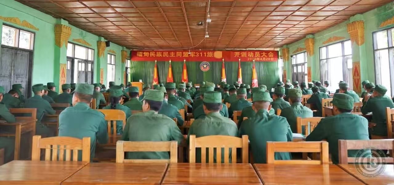 4月20日,缅甸民族民主同盟军311旅某部在驻地举行2026年度军训开幕式,这次活动旨在严格执行2026年军训指示,重点是强化实战训练并提升官兵战斗力。开幕式正式吹响了新年度练兵备战的号角,311旅副旅长杨文恩(Mr. Yang Wen En)中校出席了仪式,后勤处长李中文(Mr. Li Zhong Wen)中校也到场参加,作战处副处长李家浩(Mr. Li Jia Hao)少校和后勤处副处长卢祖杰(Mr. Lu Zu Jie)少校共同出席,全体参训官兵都参加了这次活动。开幕式由助理教官普飞云(Mr. Pu Fei Yun)负责主持。
