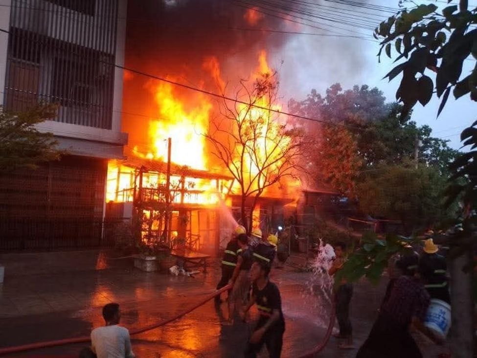 4月21日傍晚,仰光省南达贡镇区和曼德勒省良乌镇接连发生火灾。两地起火时间只隔了几个小时。晚上6点47分左右,南达贡镇区24街区发生火情。丹老路(မြိတ်လမ်း)上的一栋建筑突然起火。消防员、辅助消防员和公益组织成员迅速赶往现场救援。大火最终在晚上7点8分被彻底扑灭。