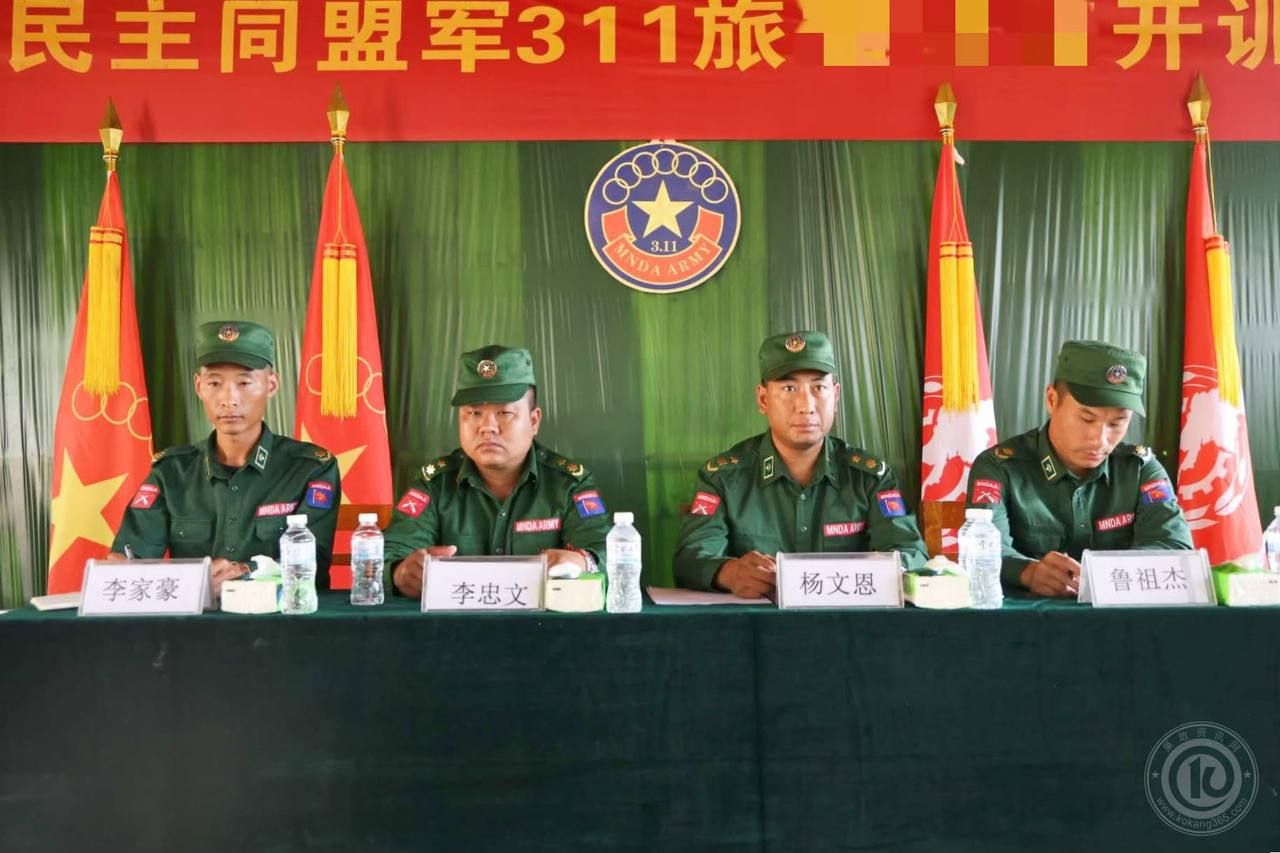 4月20日,缅甸民族民主同盟军311旅某部在驻地举行2026年度军训开幕式。这次活动旨在严格执行2026年军训指示。重点是强化实战训练并提升官兵战斗力。开幕式正式吹响了新年度练兵备战的号角。311旅副旅长杨文恩(Mr. Yang Wen En)中校出席了仪式。后勤处长李中文(Mr. Li Zhong Wen)中校也到场参加。作战处副处长李家浩(Mr. Li Jia Hao)少校和后勤处副处长卢祖杰(Mr. Lu Zu Jie)少校共同出席。全体参训官兵都参加了这次活动。开幕式由助理教官普飞云(Mr. Pu Fei Yun)负责主持。