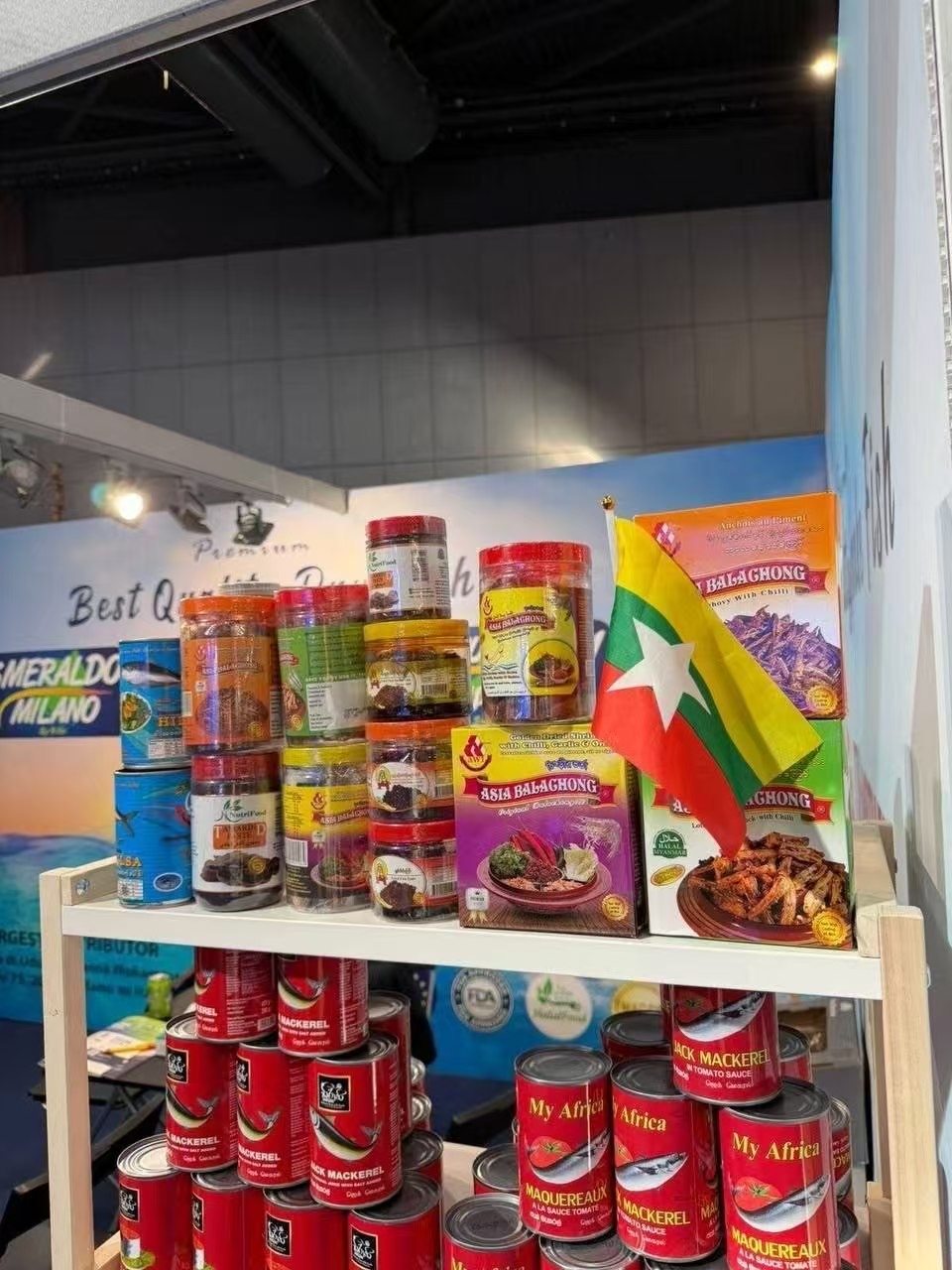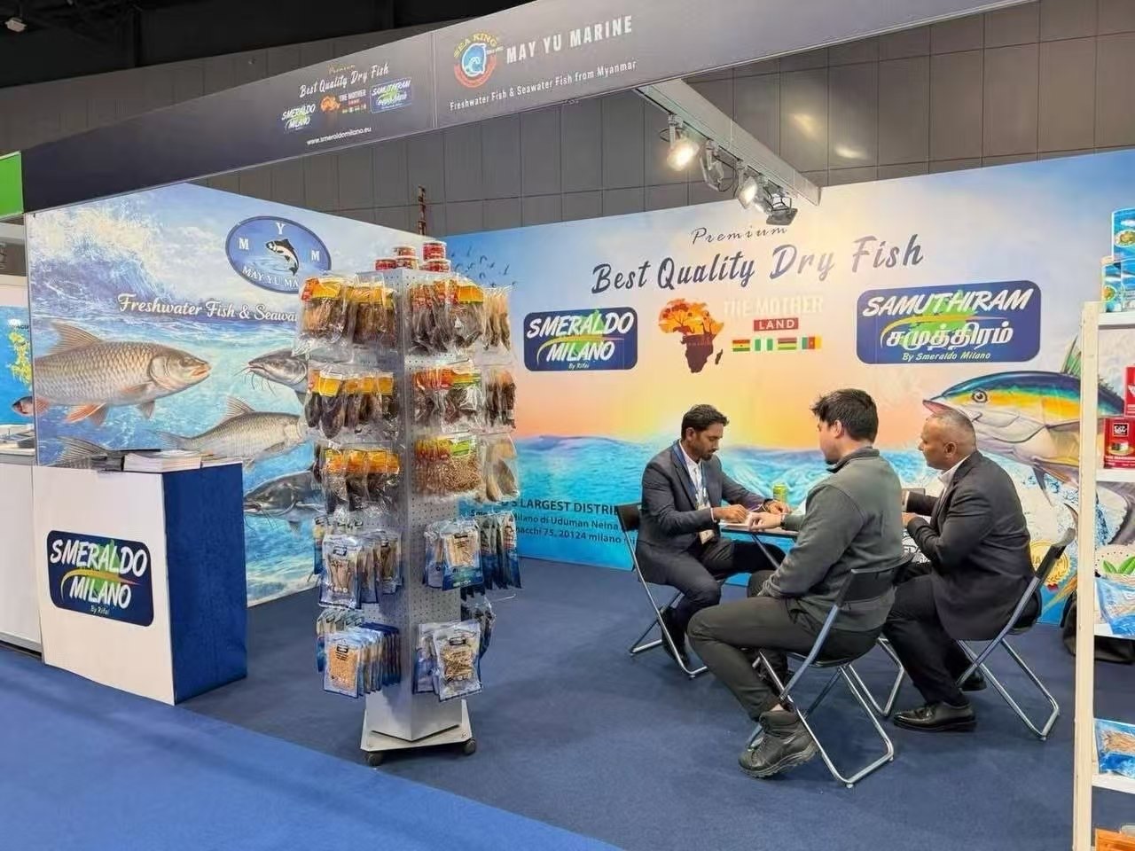 4月21日到23日,一场海鲜展在西班牙巴塞罗那格兰维亚展览中心举行,缅甸梅尤(မေယု)水产公司带着本土水产品亮相了这次展会。这家公司成立于1990年,专门从事水产品生产和出口业务,他们实力强劲,已经连续7年拿到缅甸商务部颁发的“最佳出口奖”一等奖。