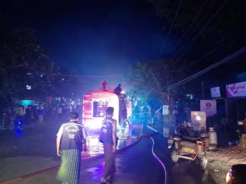 4月21日傍晚6点47分,南德贡镇区突发火灾,起火位置在24街区的丹老街(မြိတ်လမ်း),一家服装店突然起火燃烧。南德贡镇区消防站迅速出动了1辆消防车和1辆供水车,德贡港镇区消防站也派出1辆消防车前往增援,红十字会救援队和当地公益组织也纷纷赶到现场帮忙,经过20多分钟的紧急扑救,大火最终被彻底扑灭。