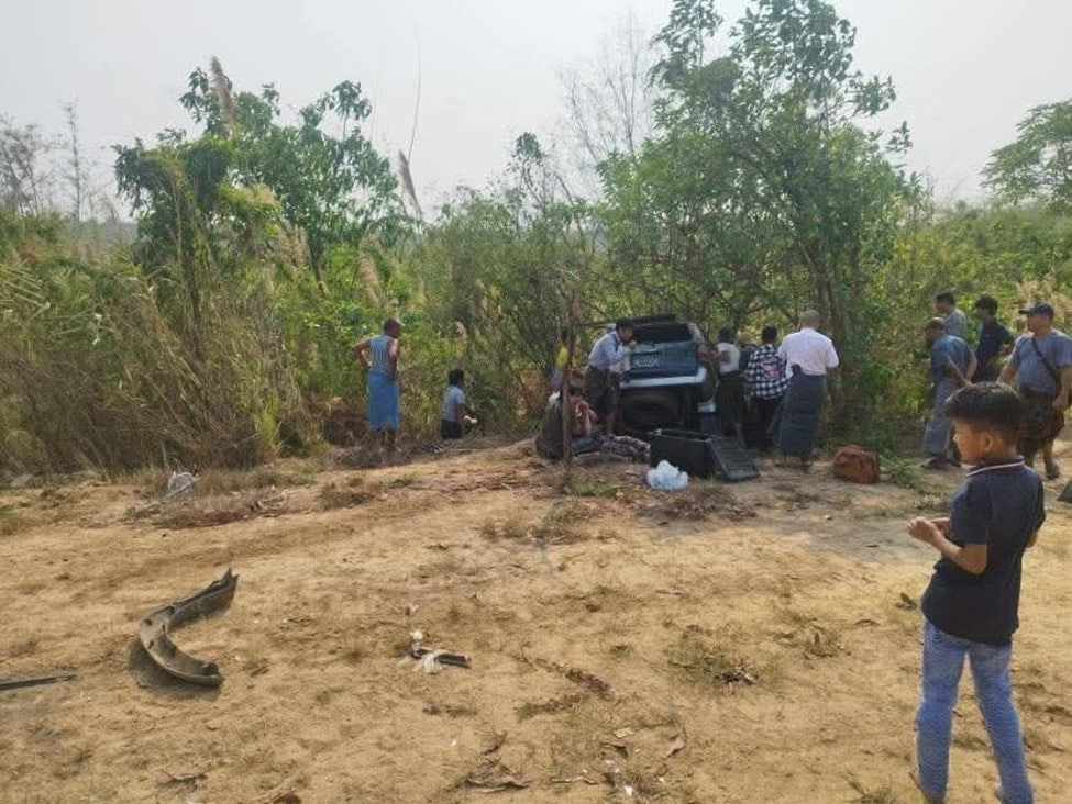 4月23日上午10点半左右。仰曼高速公路上发生了一起车祸。一辆汽车突然失控冲进路边水沟。当时这辆车正从仰光开往内比都。车上共载有9人。车子开到182/7和183/0英里路标之间时发生了意外。事故共造成8人受伤。伤者包括1名僧侣、2名男性和5名女性。救援人员已将伤者送往内比都1000床位医院(နေပြည်တော်ကုတင်-၁၀၀၀ ဆေးရုံ)接受治疗。