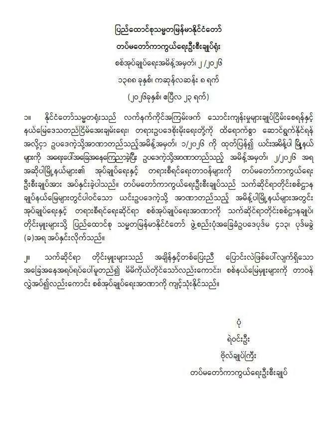 4月23日总统府发布了第1/2026号法令。宣布在9个省邦的部分镇区实施紧急状态,期限为90天。此举是为了有效维护地区稳定与法治。决定是依据2008年宪法第412条a款做出的。具体涉及克钦邦5个镇区,克耶邦3个镇区,克伦邦2个镇区。钦邦有7个镇区,实皆省有8个镇区。马圭省5个镇区,曼德勒省1个镇区。若开邦和掸邦分别有14个和15个镇区被列入。这些地区的紧急状态从4月23日起正式生效。