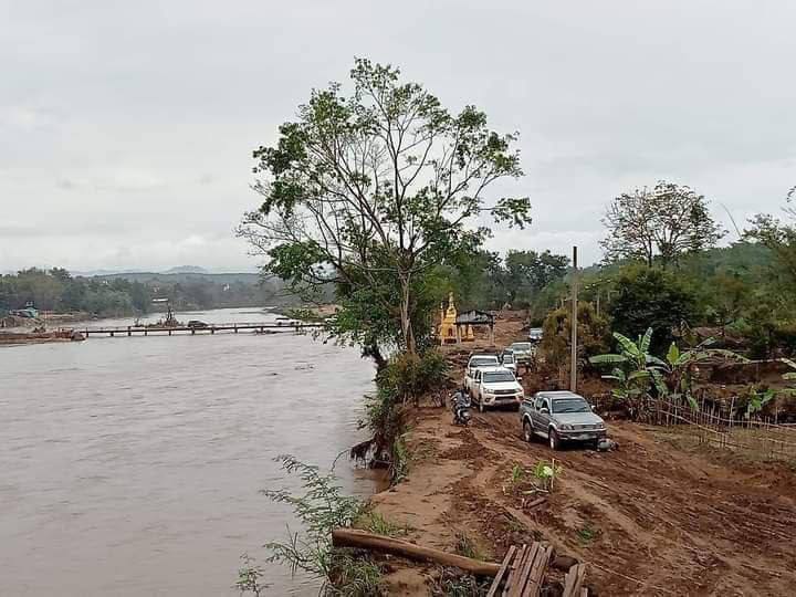 掸邦东部赛康临时桥的桥头引道因降雨严重受损,给当地居民和游客带来不便。