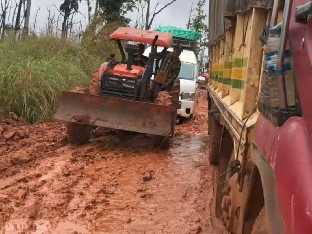 司机表示无奈!掸邦的道路泥泞不堪,交通严重堵塞