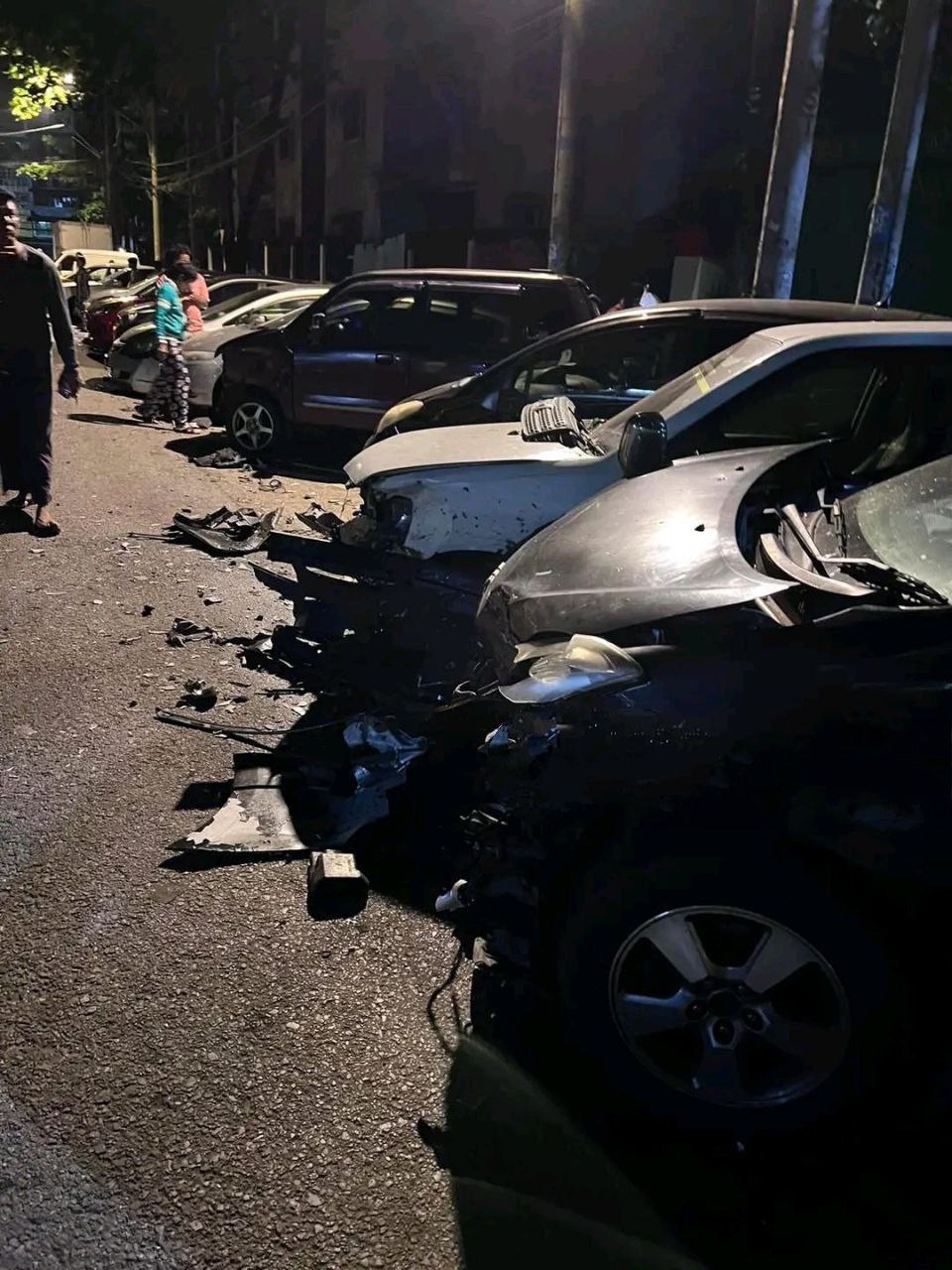 今天(11月12日)早上,在仰光 三桥镇区(စမ်းချောင်း)琼多路(ကျွန်းတောလမ်း),一辆Nissan Altima车撞上了路边停放的6辆车,没有造成人员受伤。