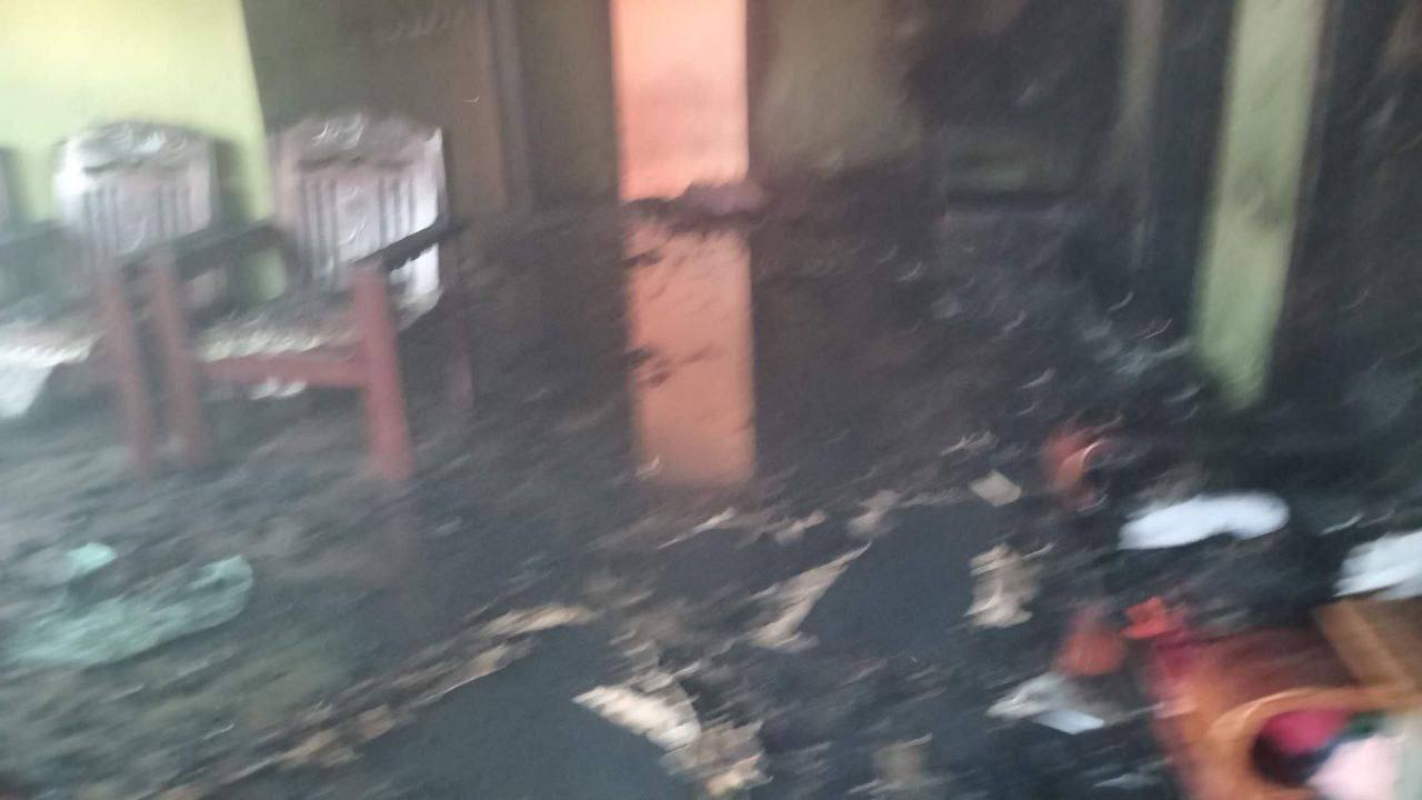 火灾导致男子家的摩托车、两袋大米以及其他生活用品全部烧毁。