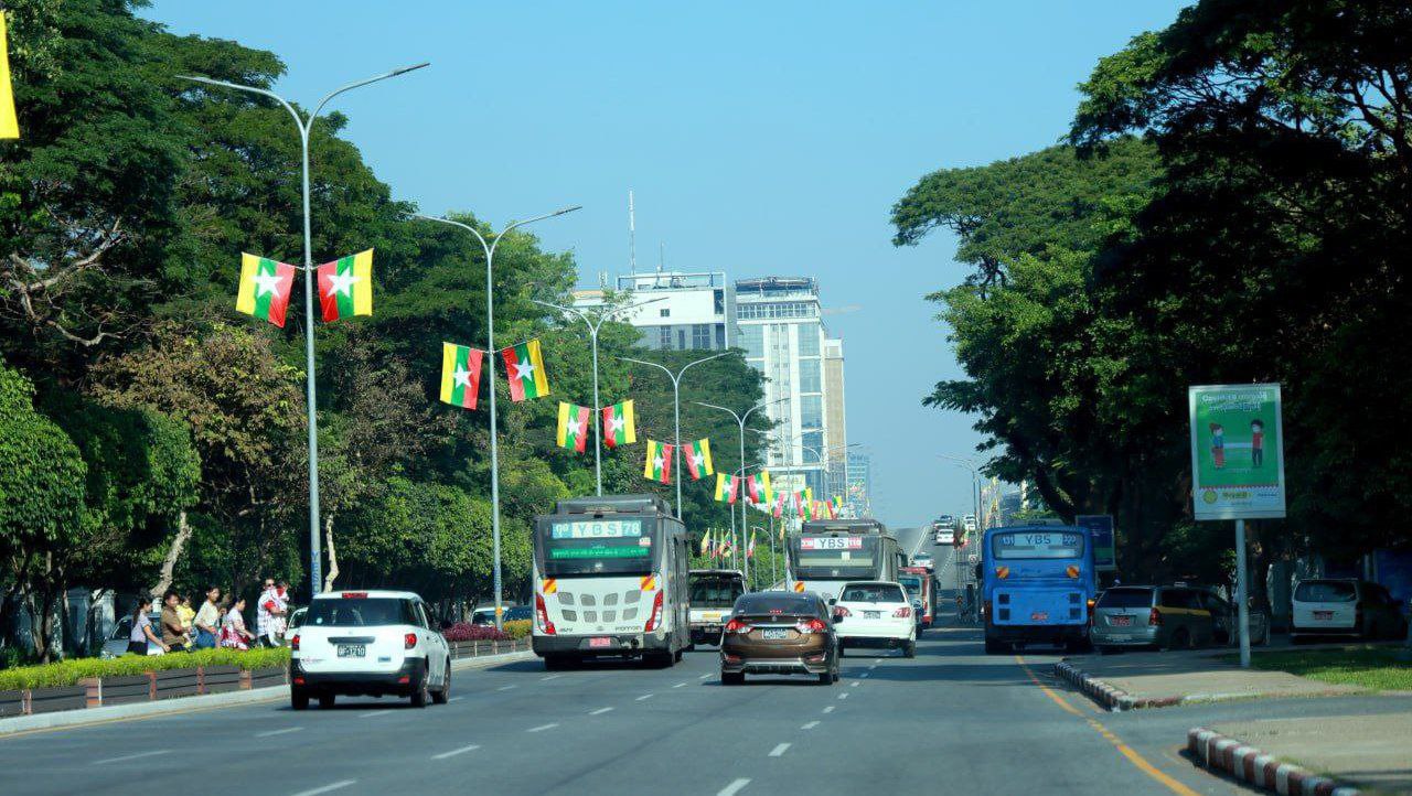 仰光主干道卑谬路(ပြည်လမ်း)独立日庆典彩排期间禁止通行