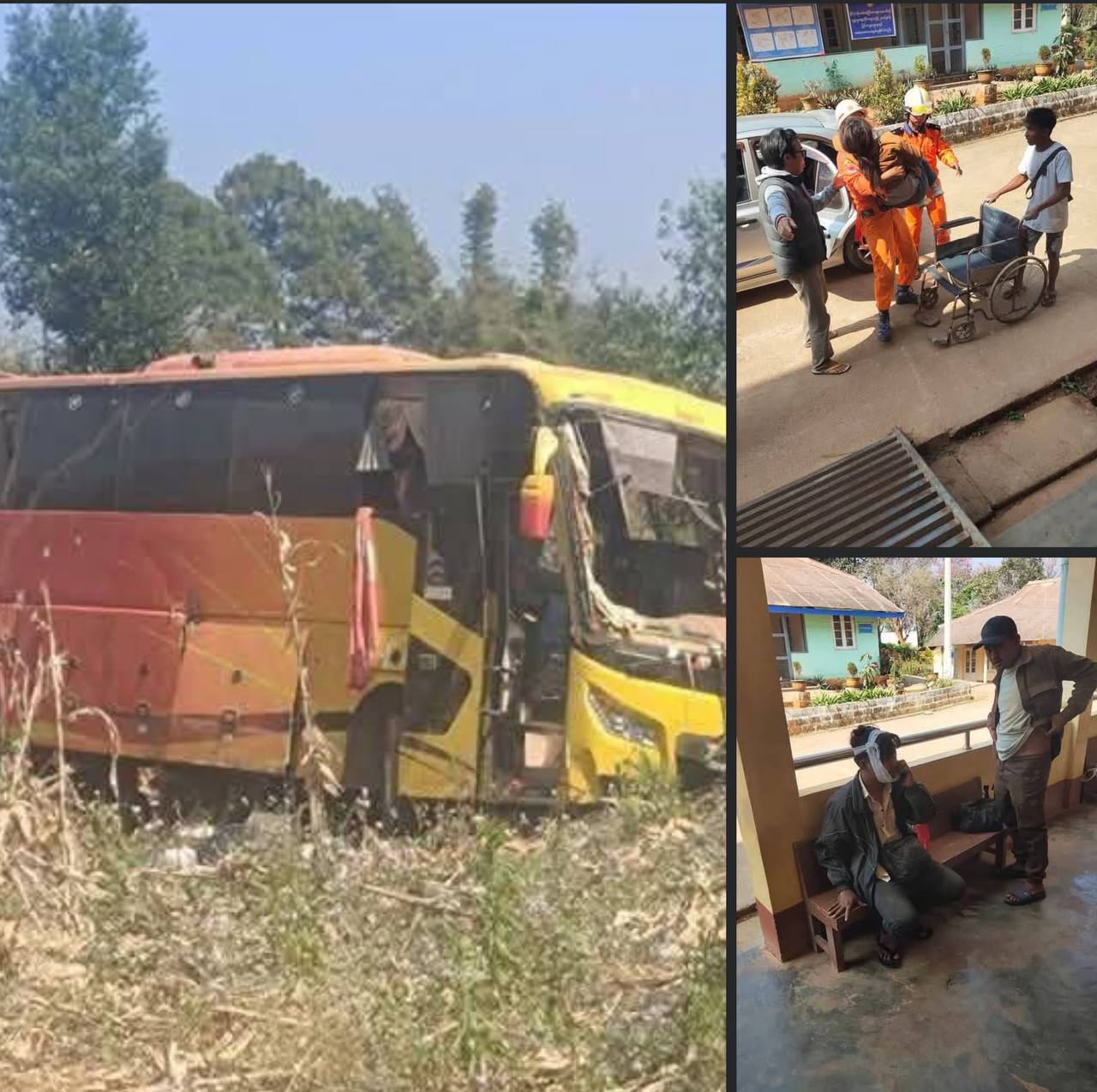 今天(2月1日)上午11点左右,在东枝—彬龙—皎丹公路上,一辆长途客运大巴车发生侧翻,导致7人受伤。