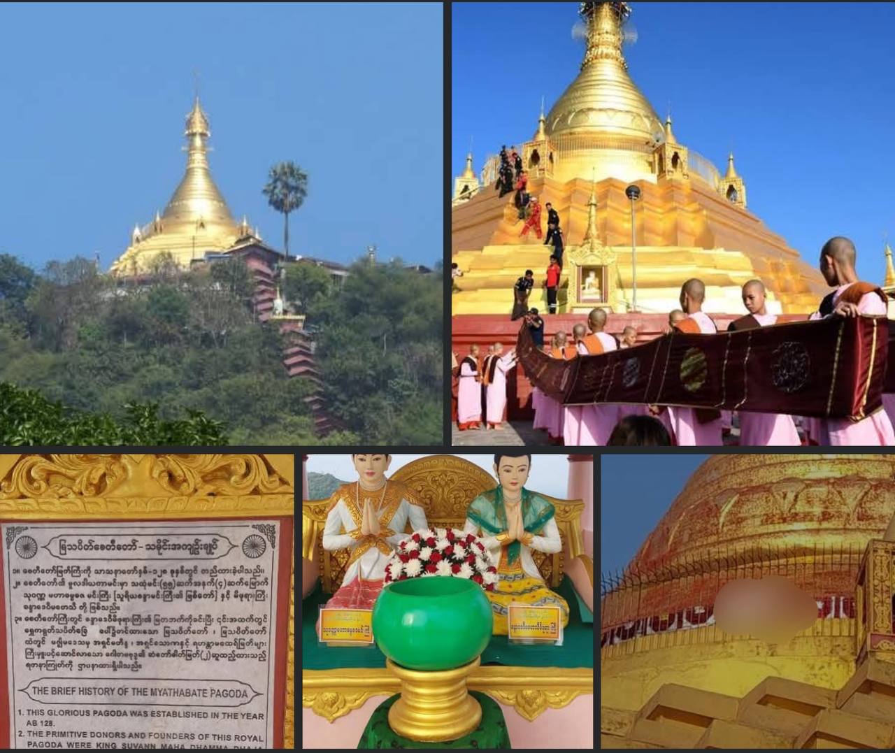 孟邦直通镇(သထုံ)သိင်္ဂနိတ်山顶的ဆံတော်ရှင်မြသပိတ်大佛塔将举办第七届僧袍供奉及斋饭布施活动。