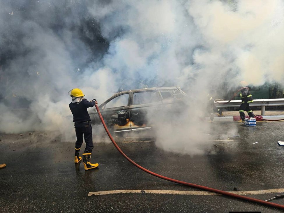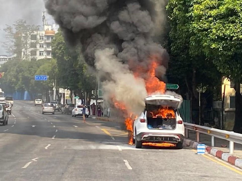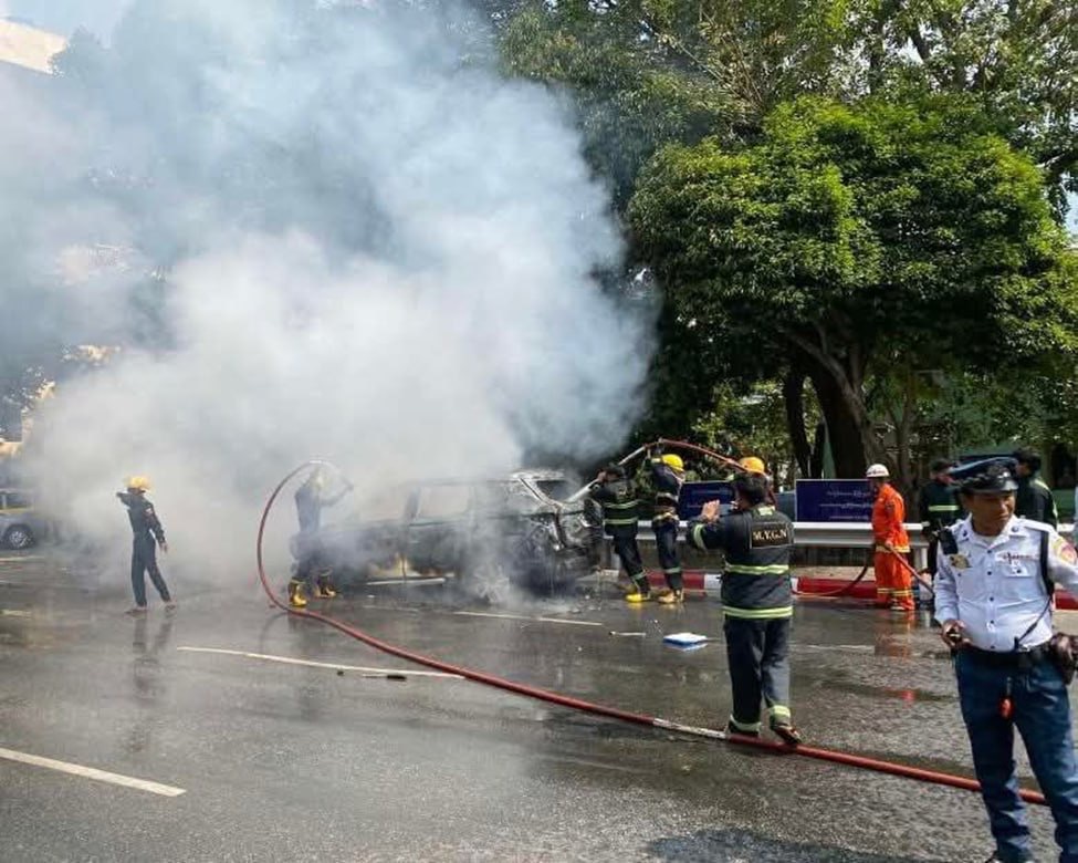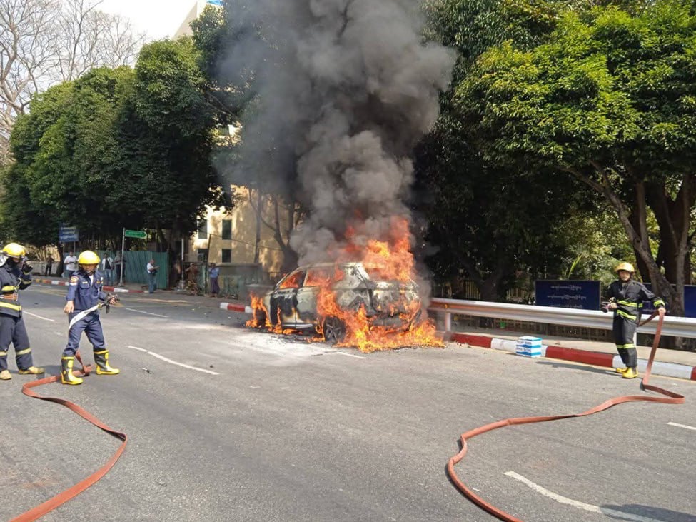 1月16日上午11点36分左右,仰光玛仰公镇区(Mayangone)5街区的卑路(Pyay Road)上发生了一起火灾事故。一辆私家车突然起火燃烧。经过大约15分钟的扑救,火势在11点50分被完全扑灭。车辆损毁比较严重,不过好在现场没有造成人员伤亡。