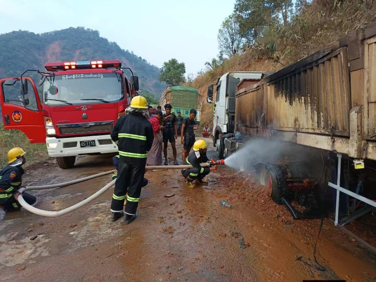 于2026年2月21日凌晨3点,缅甸柯西(ကျေးသီး)镇区发生火灾。起火地点位于霍贡(ဟော်ကုန်း)街区的拉扎迪瑞明加拉霍坎(ရာဇသီရိမင်္ဂလာဟော်ခန်း)寺庙。接到报警后,柯西镇区消防局迅速出动3辆消防车。消防队员与相关部门人员赶赴现场联合展开扑救。凌晨3点15分,大火被成功扑灭。