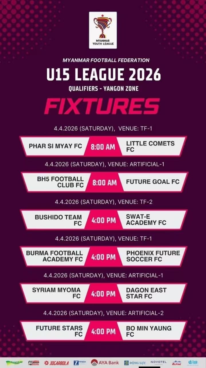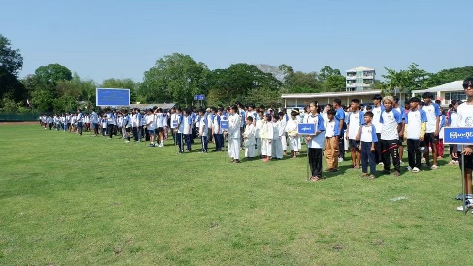 4月3日在勃生市哥登体育场(ကိုးသိန်းအားကစားကွင်း),当地举办了夏季基础体育培训班结业典礼,同时首席部长杯8县足球赛也正式开幕。2026年这期夏季培训班共开设了20个运动项目,现场有940名学员和60名教练参与,总人数达到了1000人。为了推动省内体育发展并培养更多新苗子,培训班专门教大家游泳、拳击、田径和传统藤球。另外还安排了空手道、武术、羽毛球、国际象棋和自行车等课程。