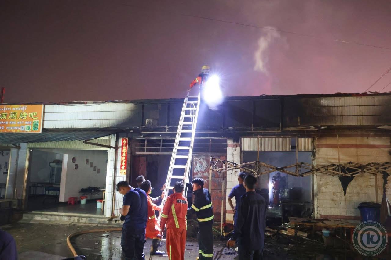 4月8日清晨,老街市金散钦(ကျင်စန်းချိန်)区一家路边餐馆因煤气罐爆炸起火。火势迅速向四周蔓延,消防员第一时间赶赴现场。经过约30分钟的紧急扑救,大火被彻底扑灭。这场事故仅造成1名小女孩轻微烧伤。