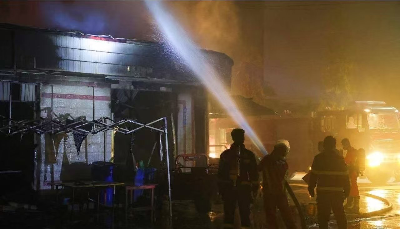 4月8日清晨,老街市金散钦(ကျင်စန်းချိန်)区一家路边餐馆因煤气罐爆炸起火,火势迅速向四周蔓延,消防员第一时间赶赴现场。经过约30分钟的紧急扑救,大火被彻底扑灭,这场事故仅造成1名小女孩轻微烧伤。