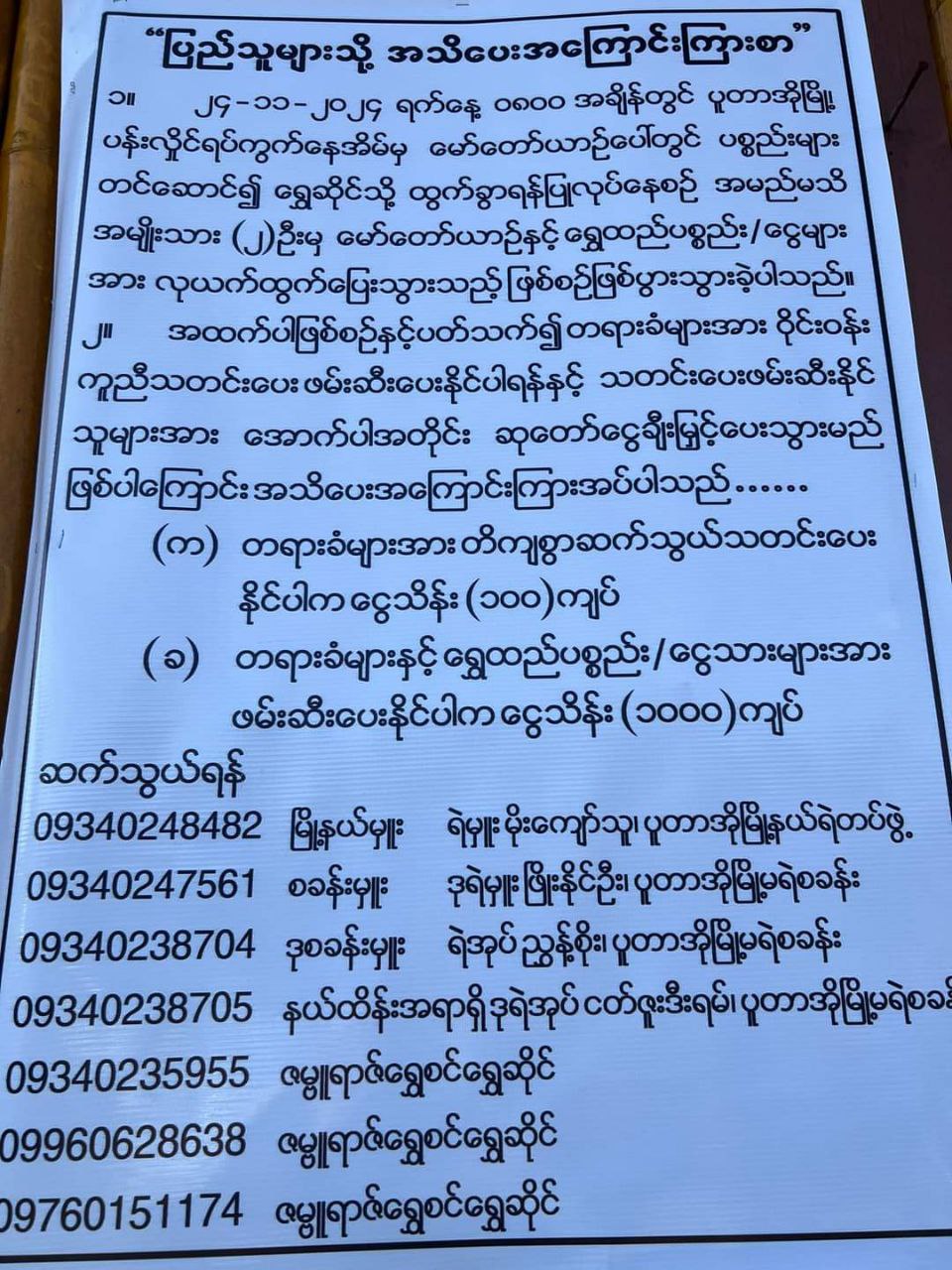 11月24日早上8点,克钦邦 葡萄市(ပူတာအို) ဇမ္ဗူရာဇ်金店发生了一起抢劫案,两名男子抢走了店主的车,并将车内大量黄金和现金盗走。