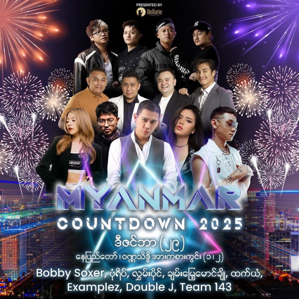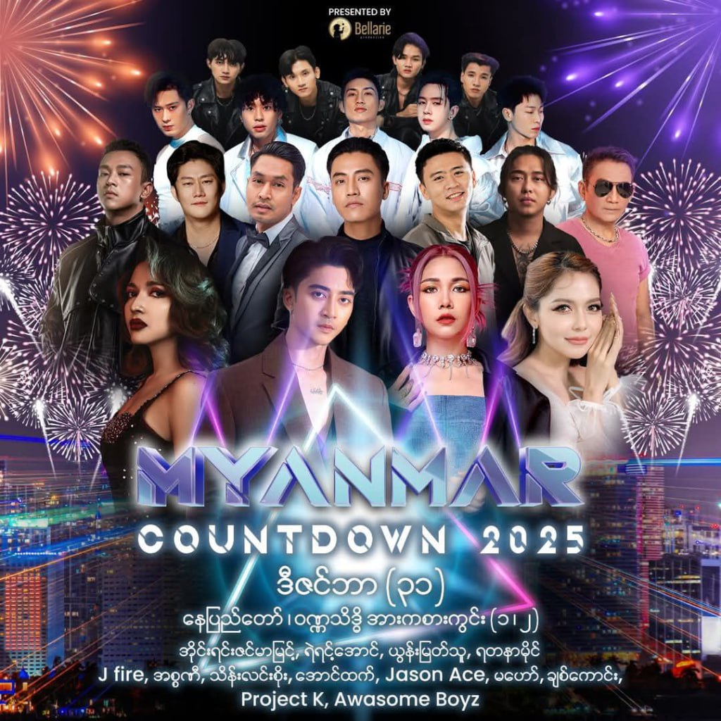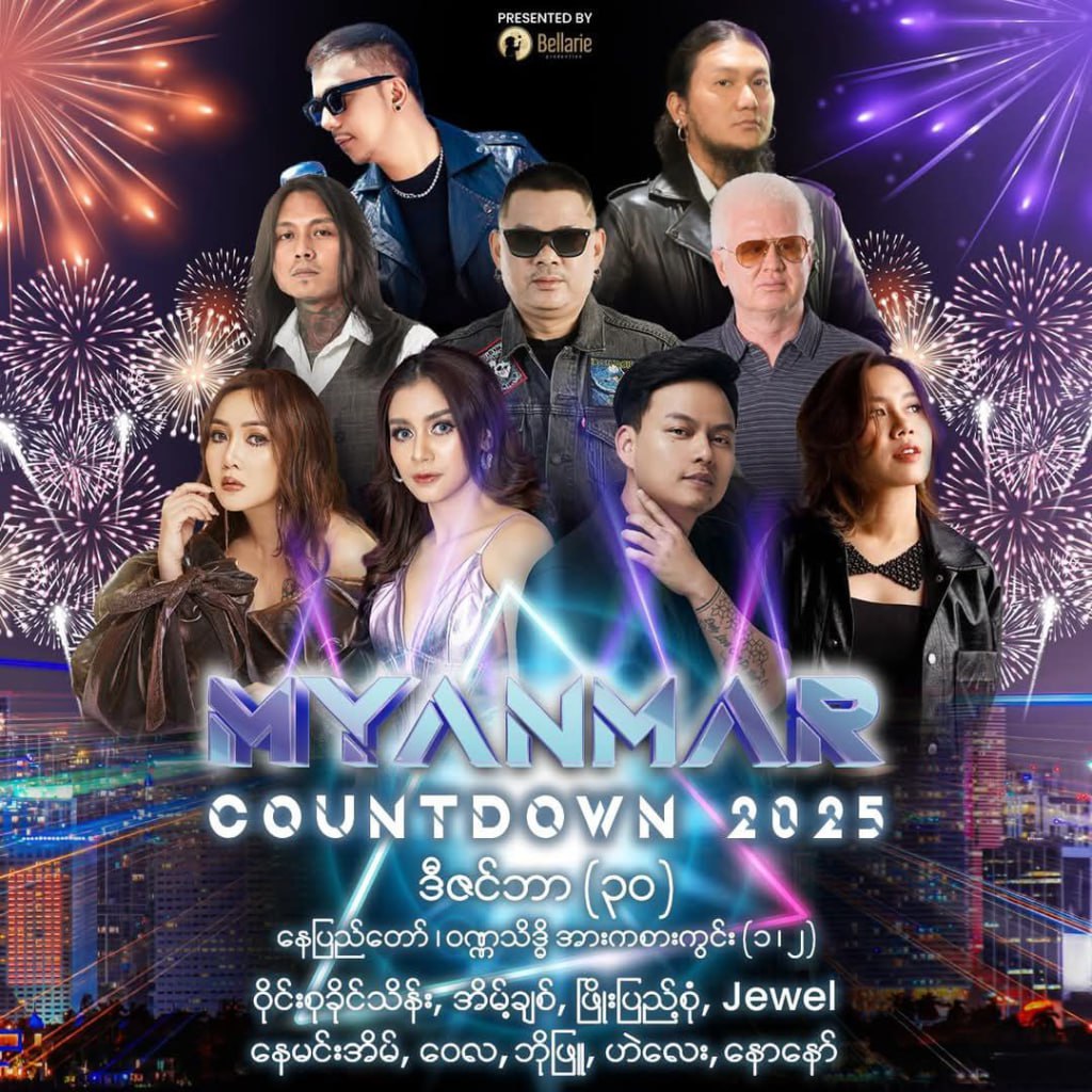 Myanmar Countdown 大型演唱会将于12月29日至31日,在内比都 温娜德迪体育场(ဝဏ္ဏသိဒ္ဓိ အားကစားကွင်း)隆重举行。这场为期3天的盛大演出将免费开放,到时候会有30多位缅甸知名歌手参于演出。
