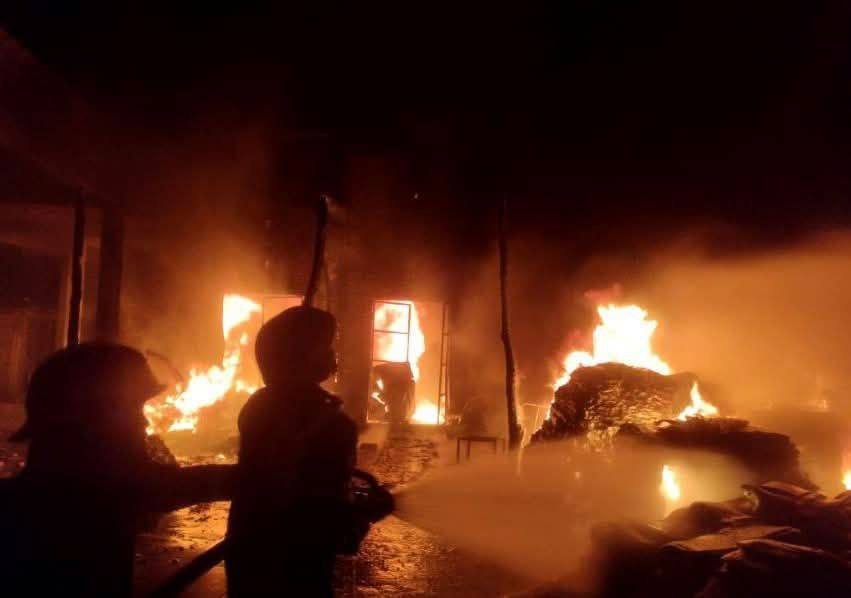 今天(16日)晚上8点,克伦邦 帕安市ဝင်းစိန်村的一个天然橡胶(烟胶片)厂发生火灾。