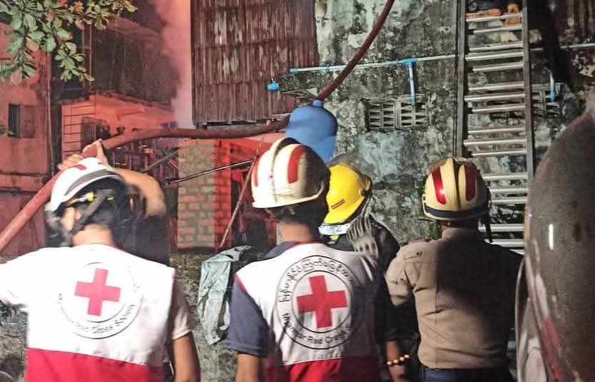 1月7日上午,仰光省瑞比达镇(ရွှေပြည်သာ)第5街区发生了一起住宅火灾。瑞比达镇和永盛镇(အင်းစိန်မြို့နယ်)的红十字分会志愿者迅速赶往现场,协助灭火并提供紧急救助。志愿者们对受伤人员进行了初步救治,并协助需要搬迁的家庭转移到安全区域。