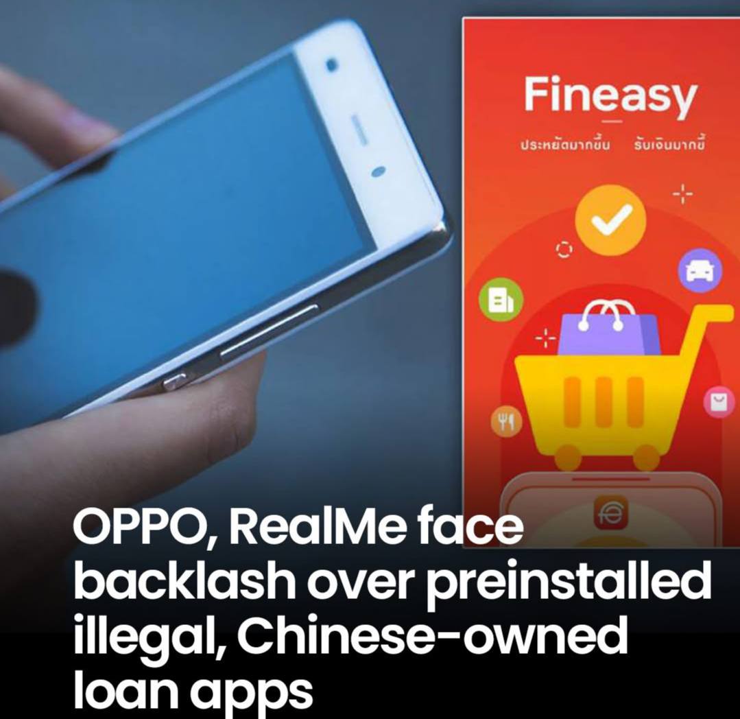 泰国的两家中国手机公司OPPO和RealMe,在未经泰国央行(BOT)批准的情况下,在其设备中预装了第三方贷款应用程序。