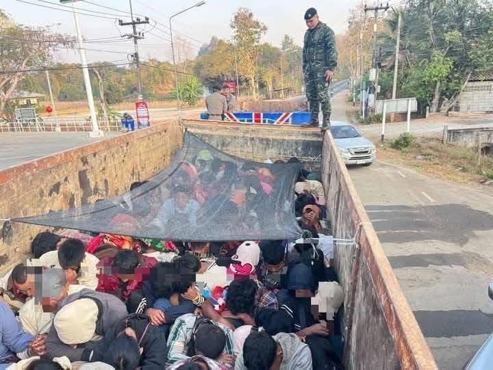 据悉,1月29日晚上11点,泰国达府湄索县的检查站发现一辆运载稻谷的货车内秘密藏匿了26名缅甸公民。这些人通过无监管的边境通道非法进入泰国。