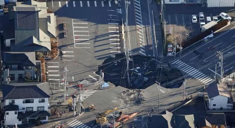 八潮市政府表示,塌陷可能是由于地下的污水管道长期被腐蚀,最终导致地面塌陷。