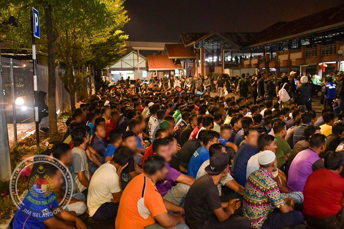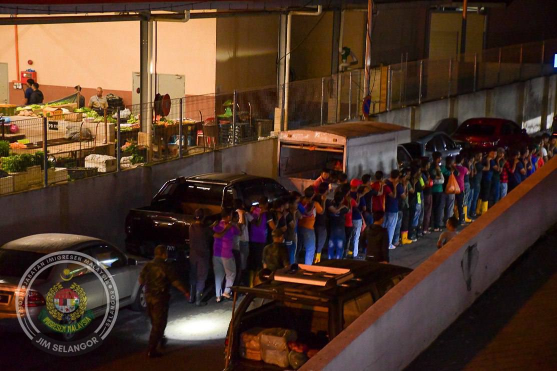 2月22日,马来西亚雪兰莪州克兰美鲁市场,超过500名缅甸劳工被捕。