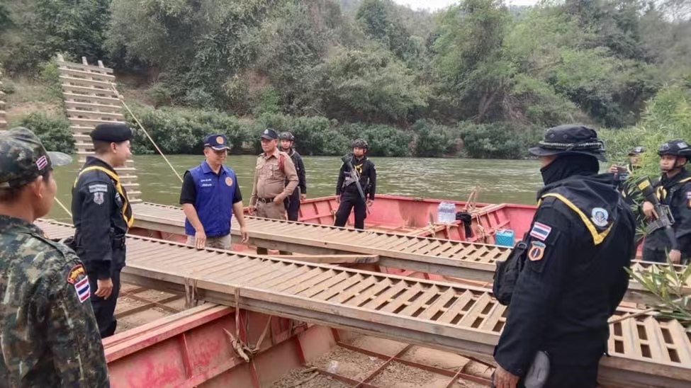 缅泰边境莫艾河泰国一侧查获两艘无主铁壳船